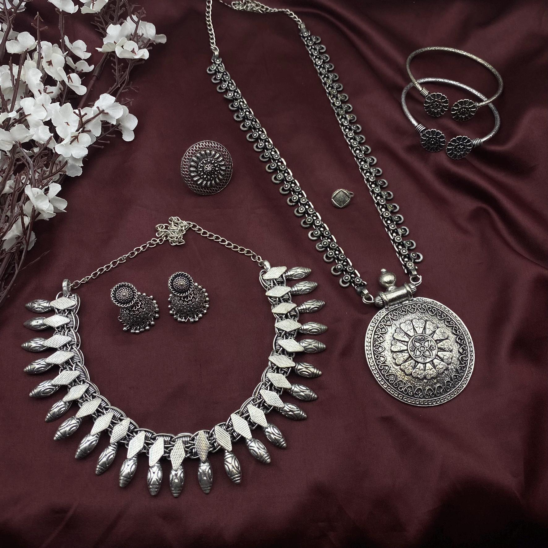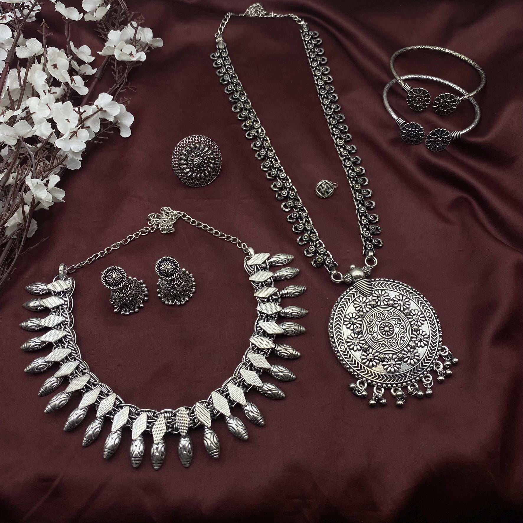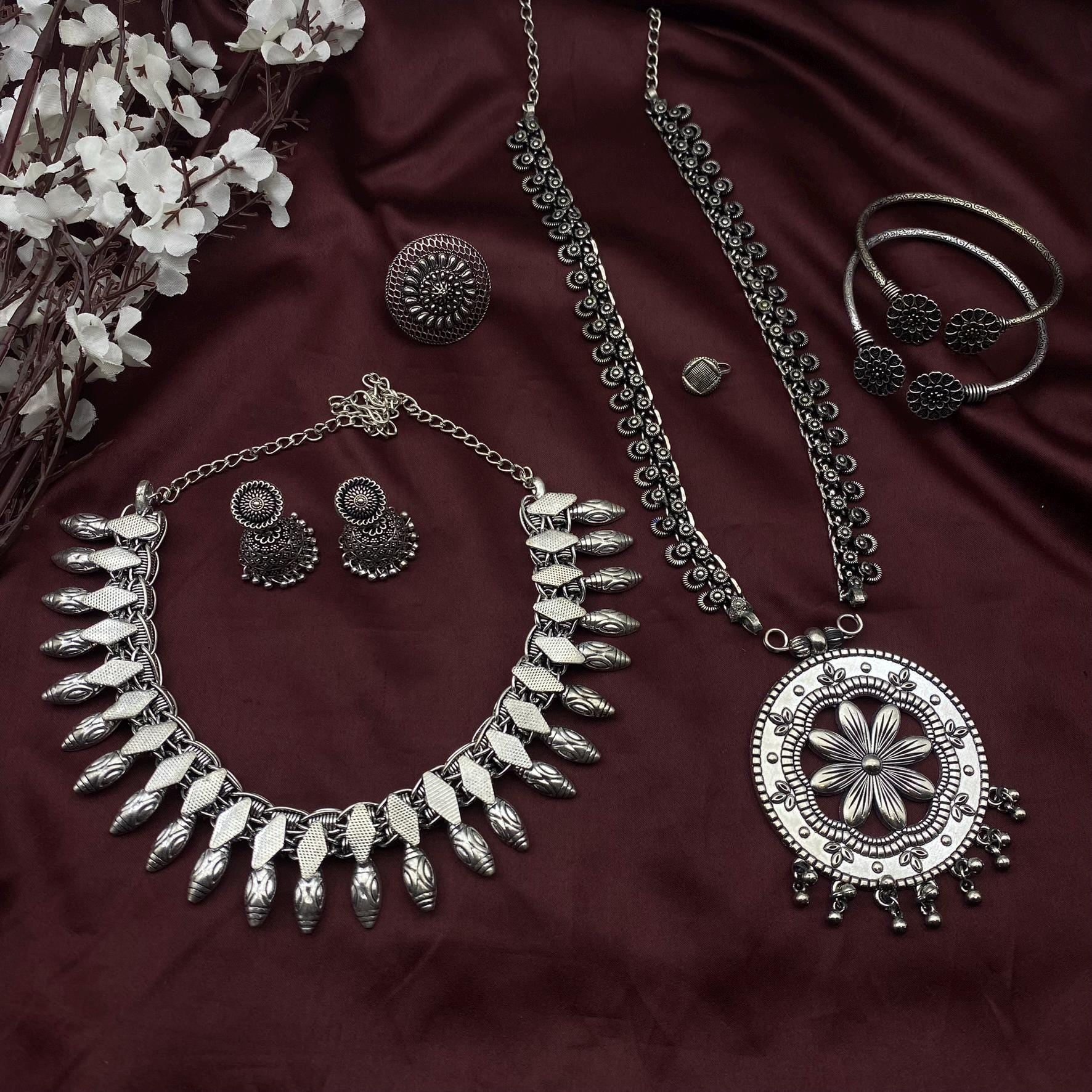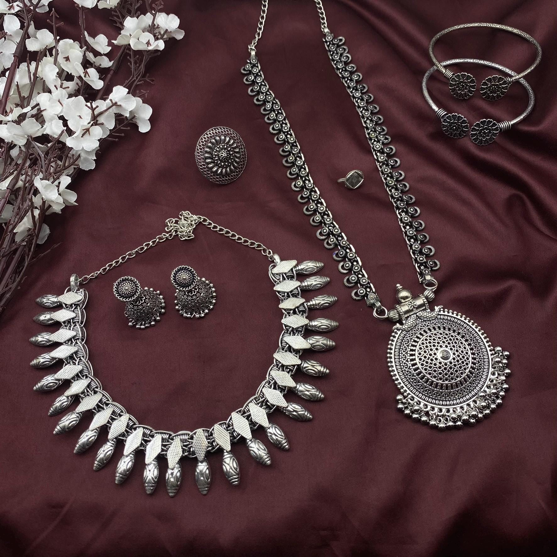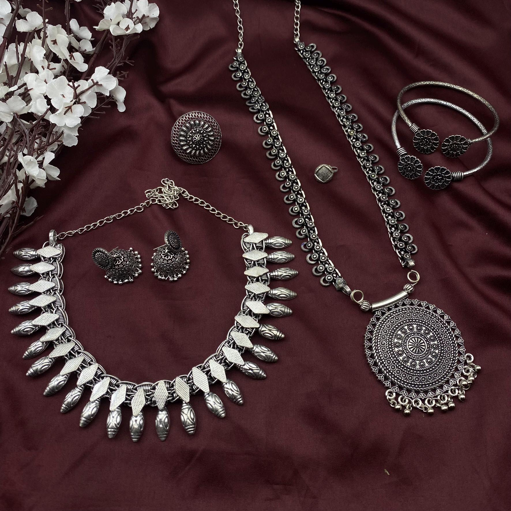 6 pc Tribal set, Boho Long Necklace Set, Oxidized Jewelry Set, Ethnic Jewelry, Temple Jewelry, Indian Jewelry Necklace Set