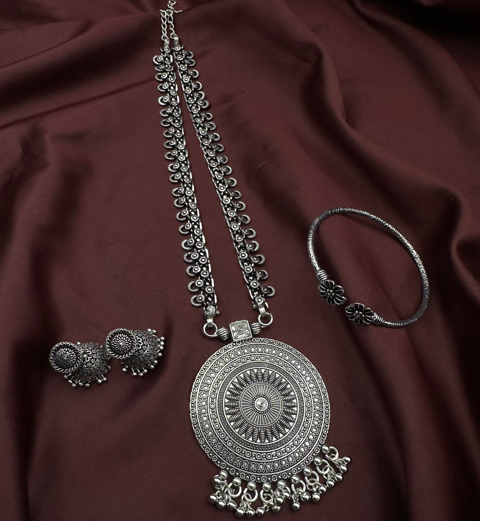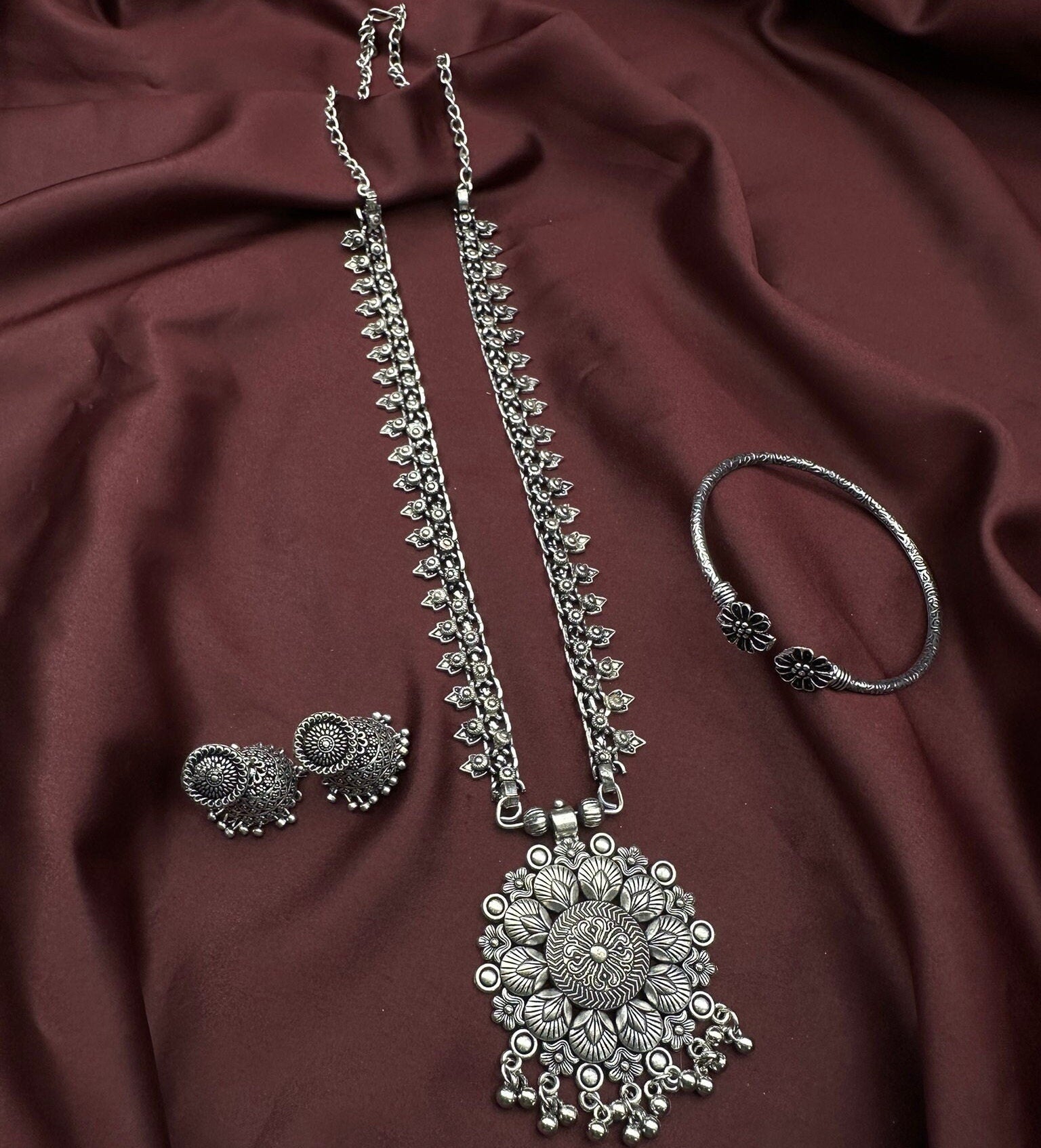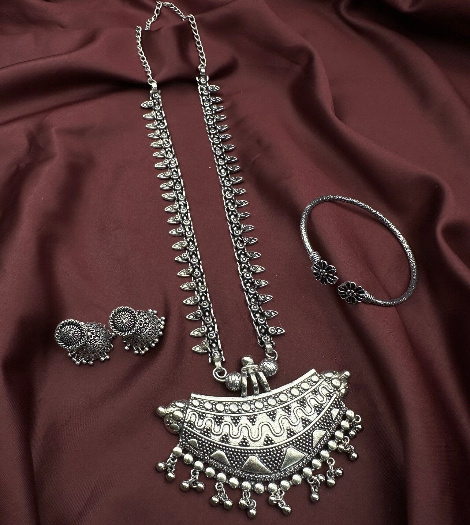 Oxidised Jewelry Temple Jewelry Long Necklace Oxidised Jhumka Oxidised Bangle Oxidised Set Oxidised Haram Necklace Navratri Jewelry Set