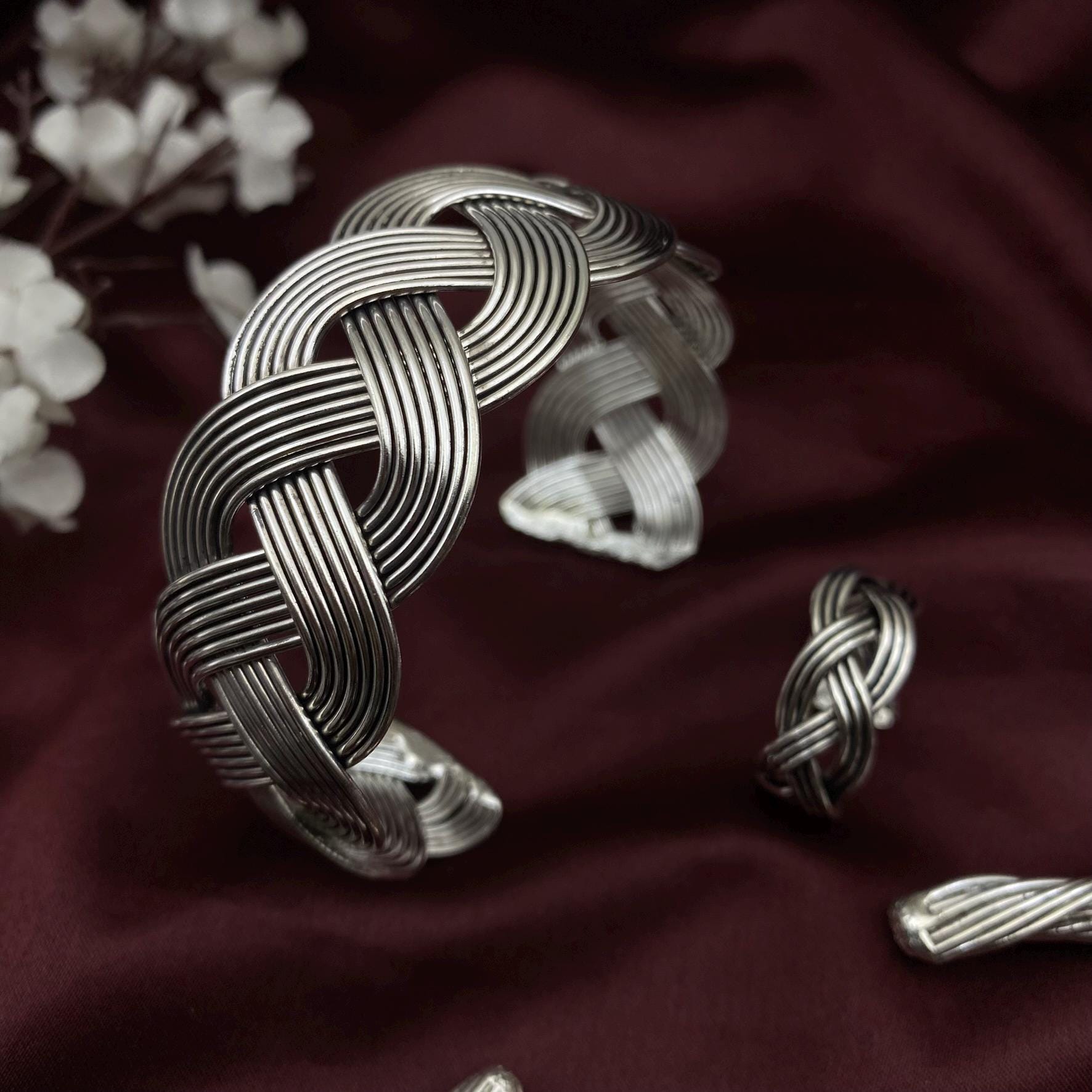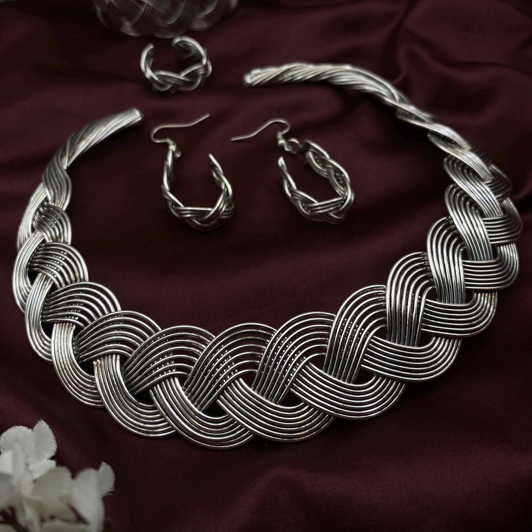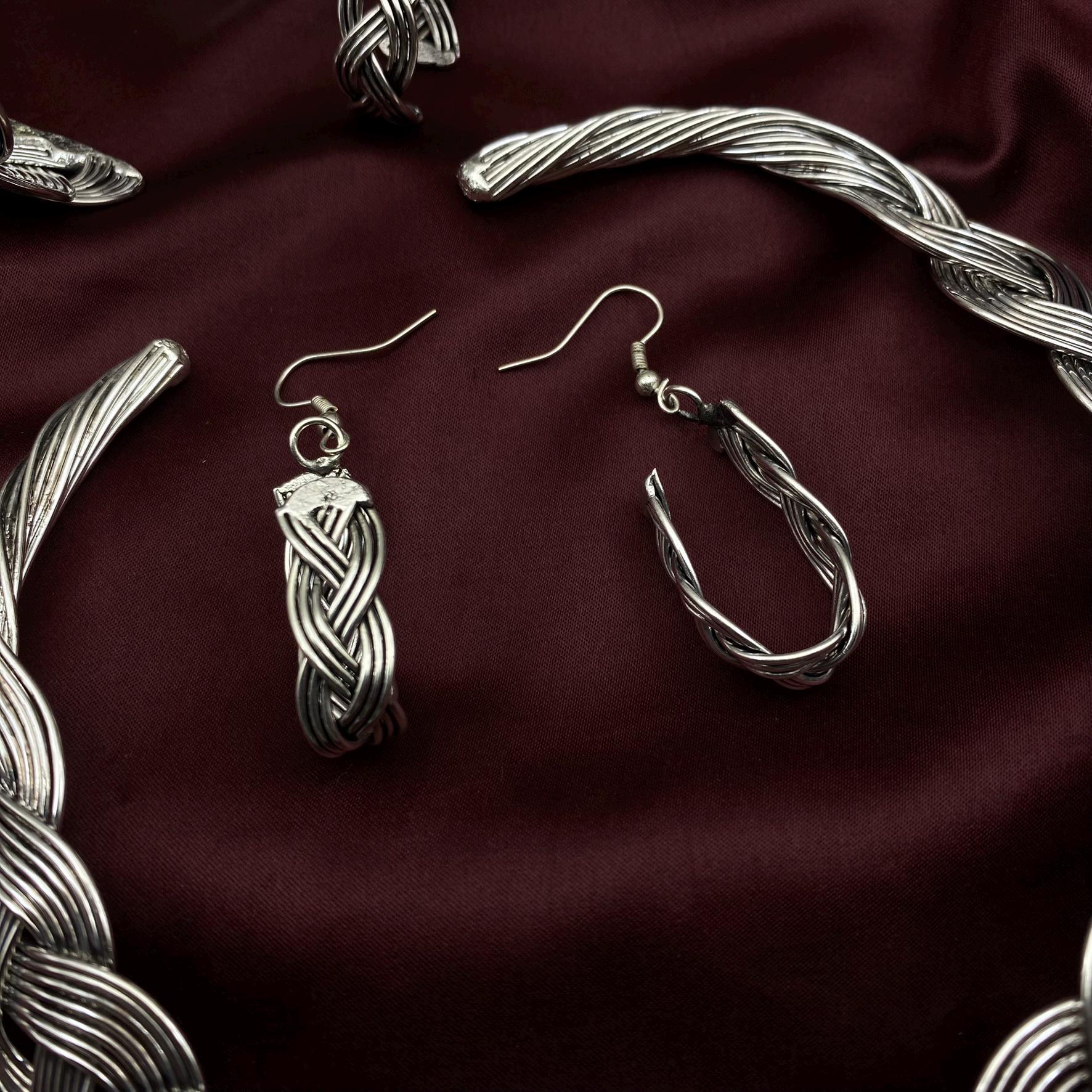 Elevate your ethnic or boho-chic look with this stunning oxidized silver braided jewelry set by Quirky Fashions. This handcrafted combo includes: