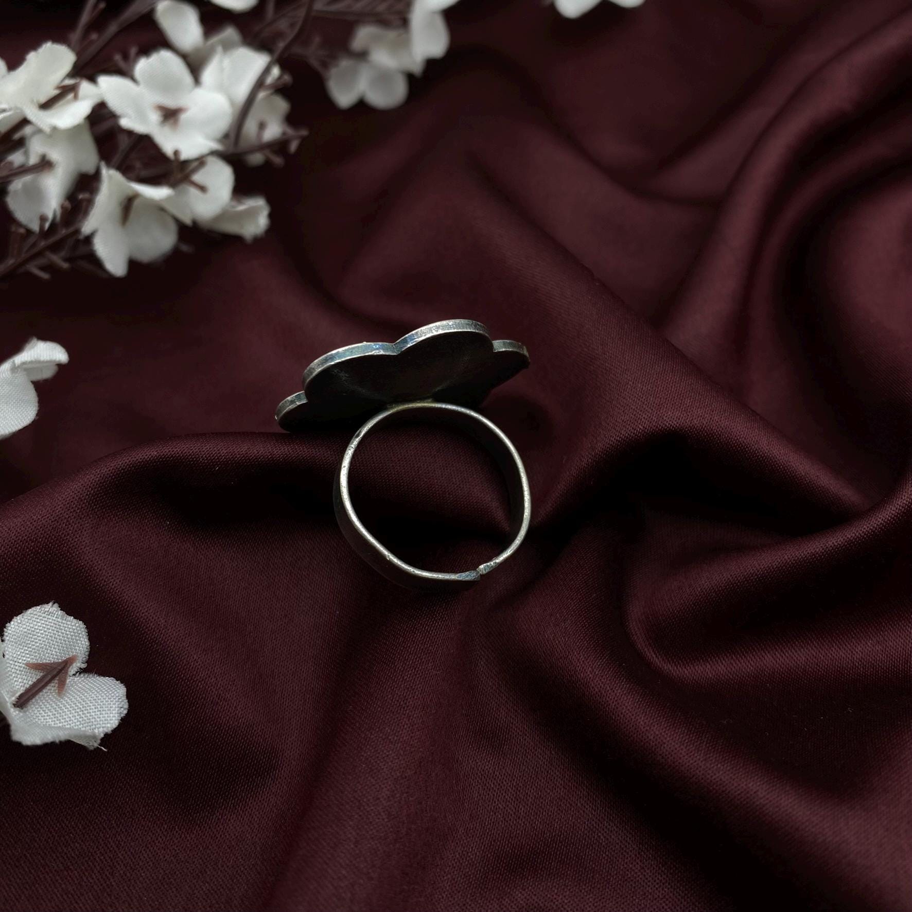 Oxidized Silver Floral Adjustable Ring – Vintage Boho Statement Ring by Quirky Fashions