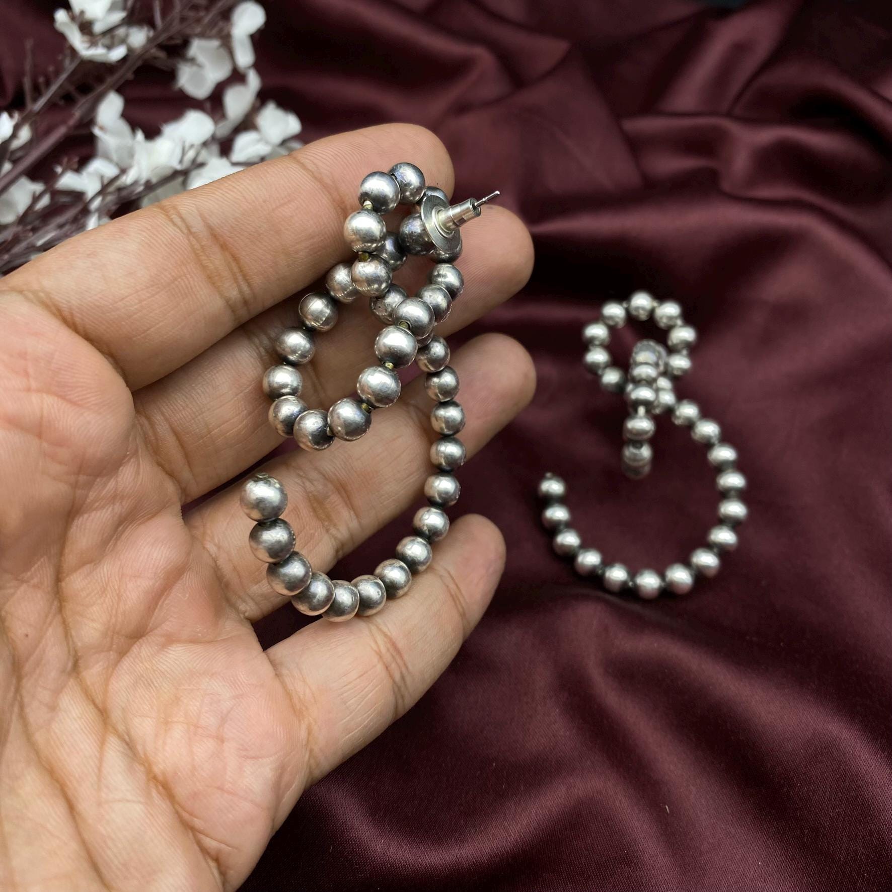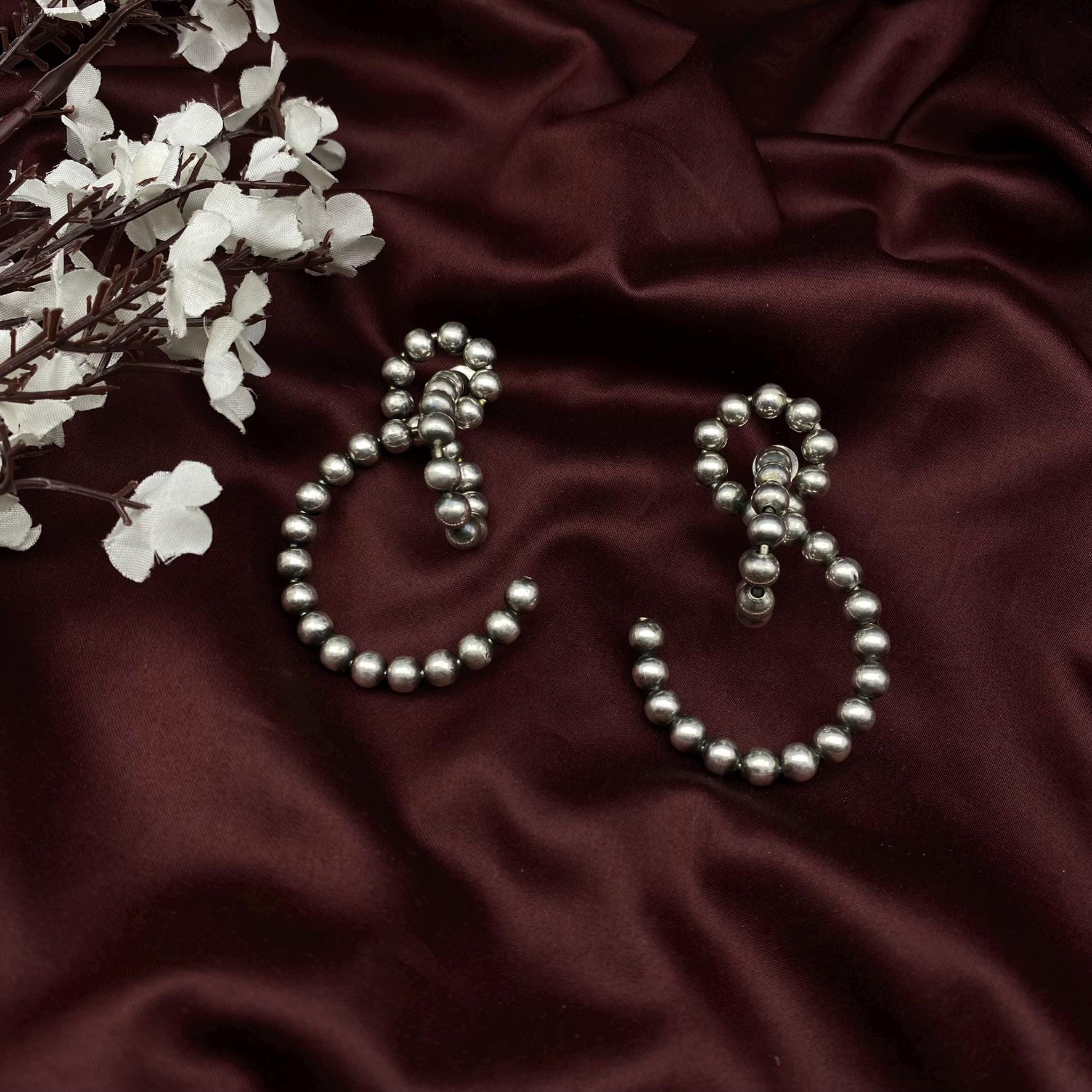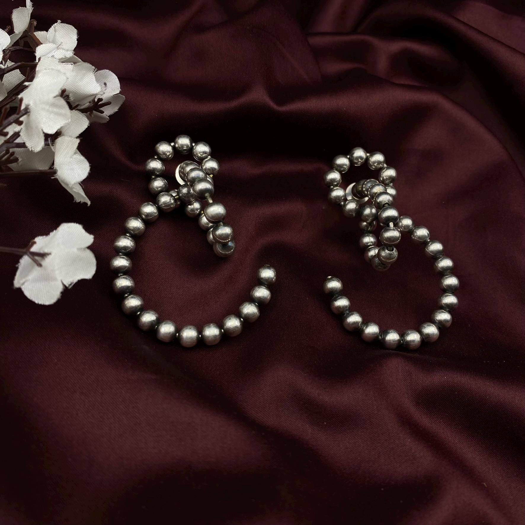 Oxidized Silver Beaded Swirl Earrings by Quirky Fashions
