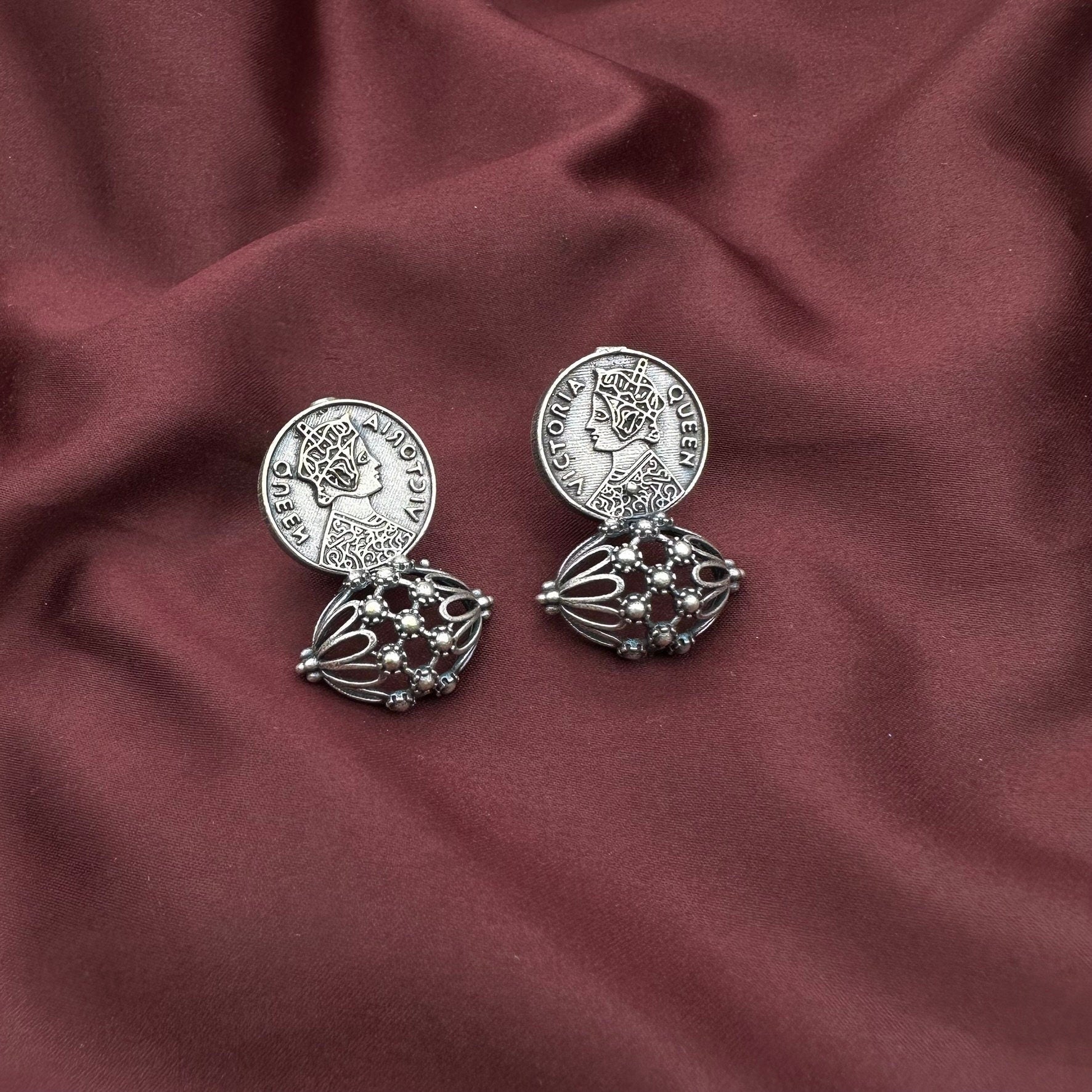Queen Victoria Indian Oxidised Silver Jewelry Tribal Ethnic Antique Studs for women girl elegant earrings