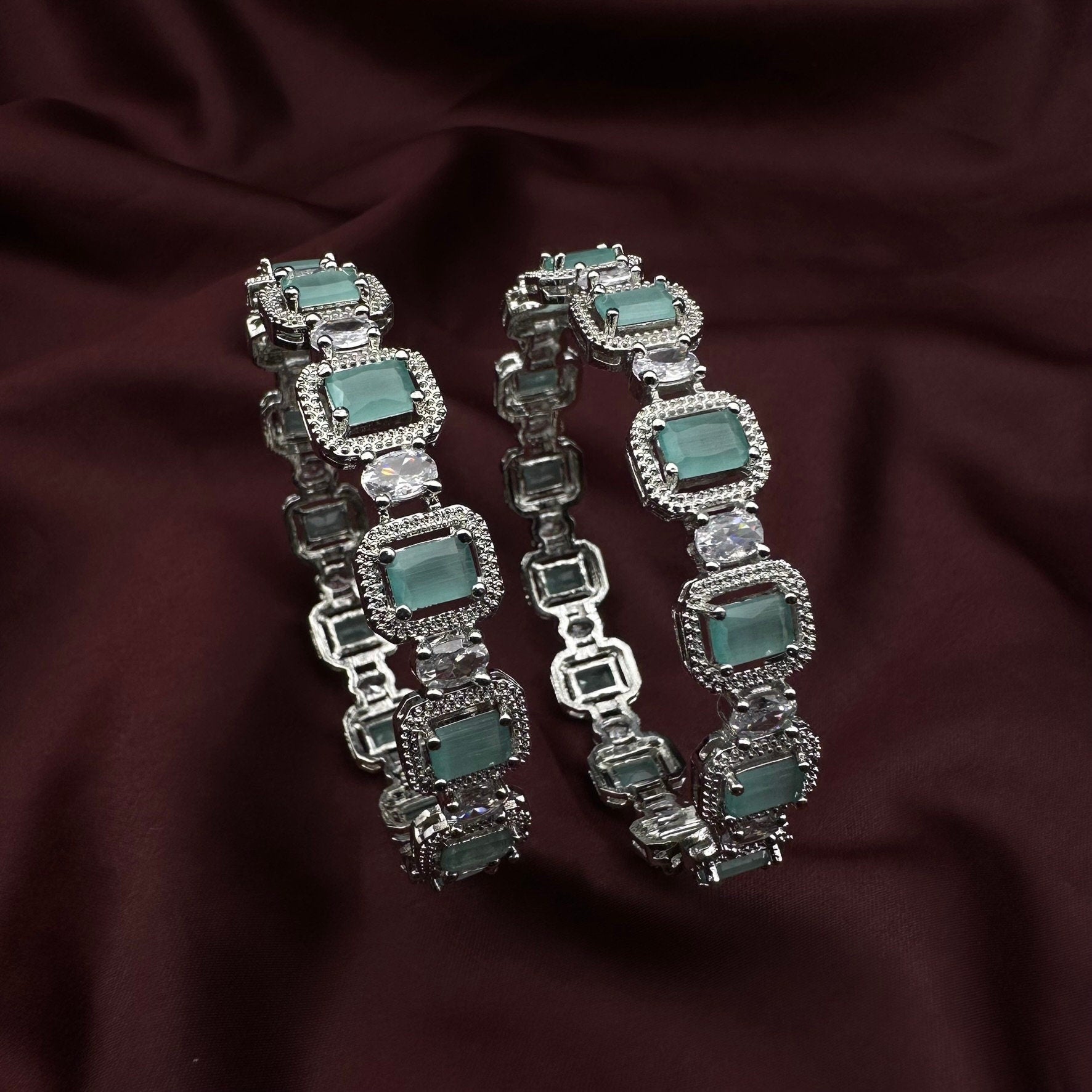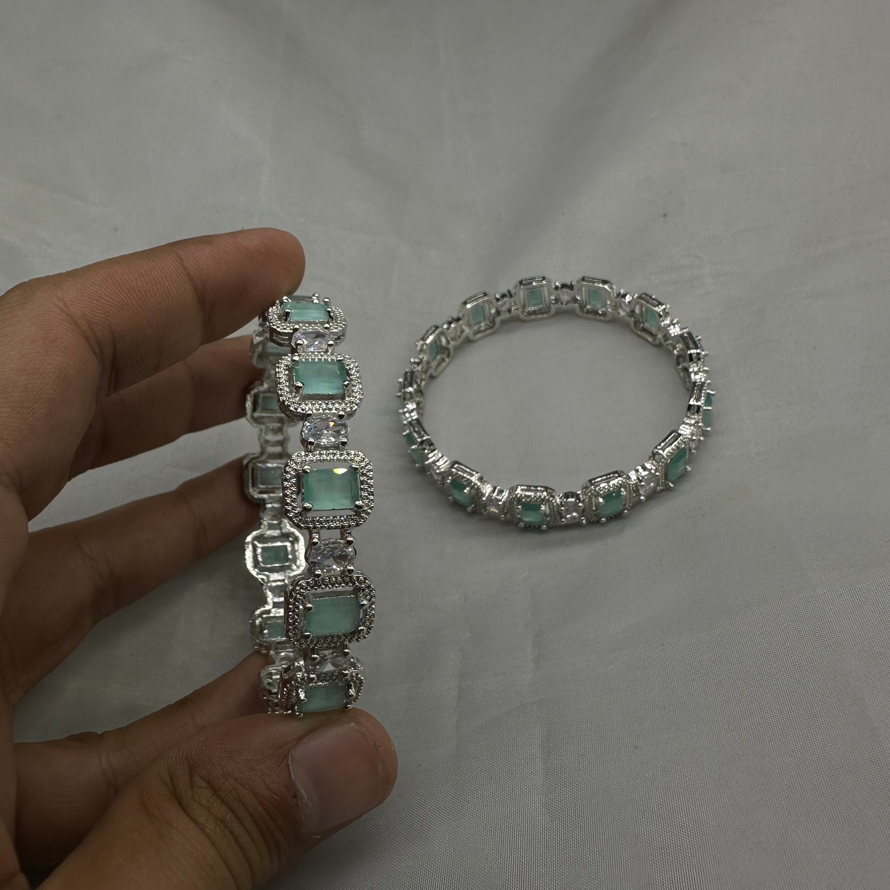 Quirky Fashions Elegant Mint Pink and Emerald Stone Round Bangle Size 2.6 bridal jewelry outfit| Indian Wedding jewelry | Designer Jewel