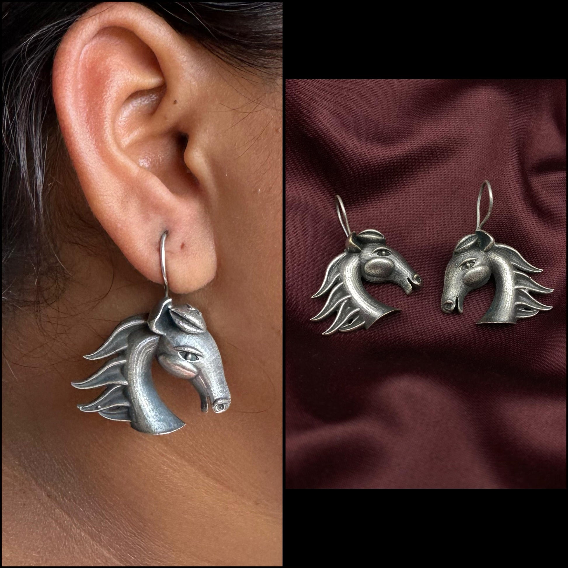 Quirky Fashions Oxidized antique silver black polish horse shape earrings | Dangle earrings | Designer Earrings | Light weight earrings