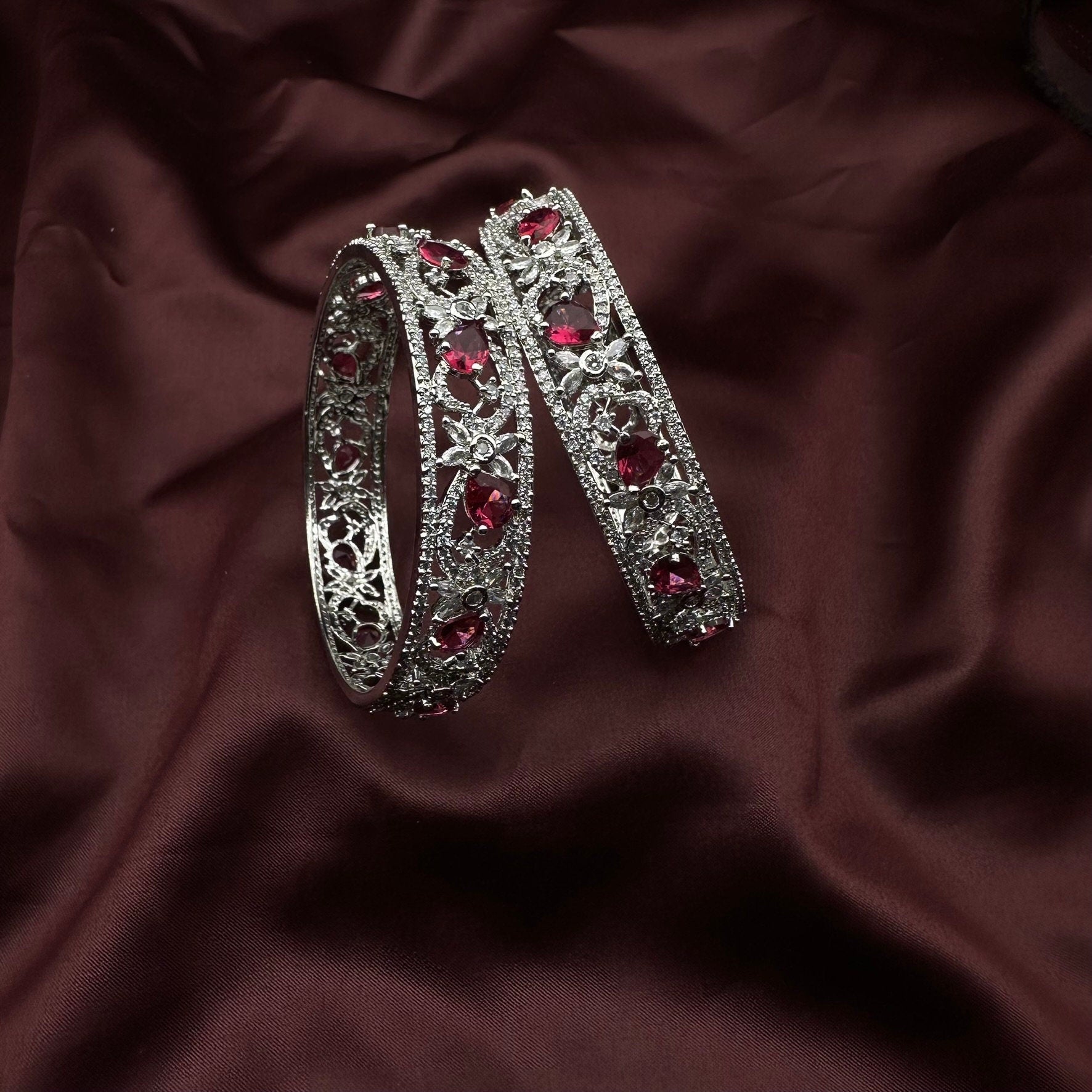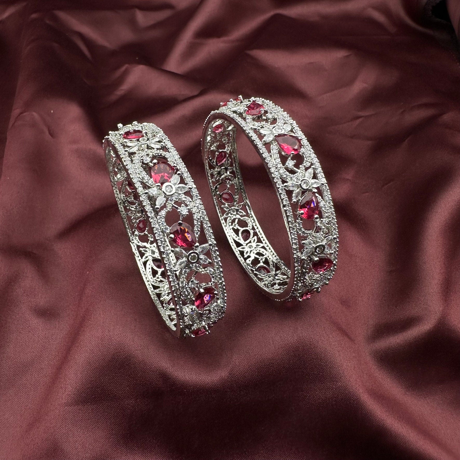 Quirky Fashions Tear-Drop Bangle, wedding wear, Date outfit, Indian wedding wear bridal jewelry, Silver Bangle American Diamond CZ Stone